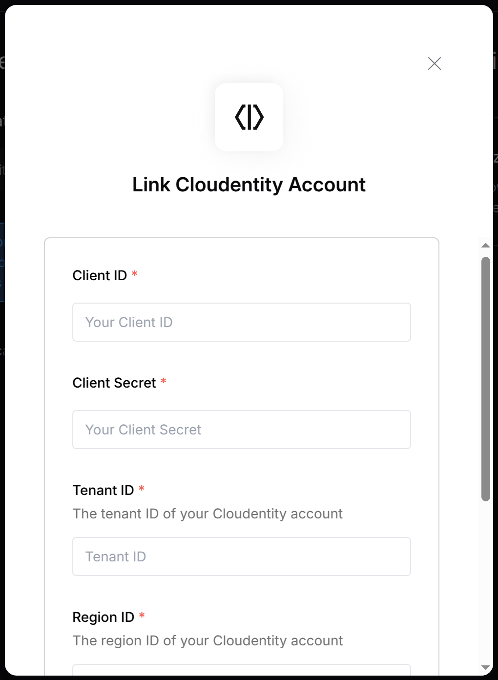 - Region ID: Enter the Region ID you obtained from Cloudentity.