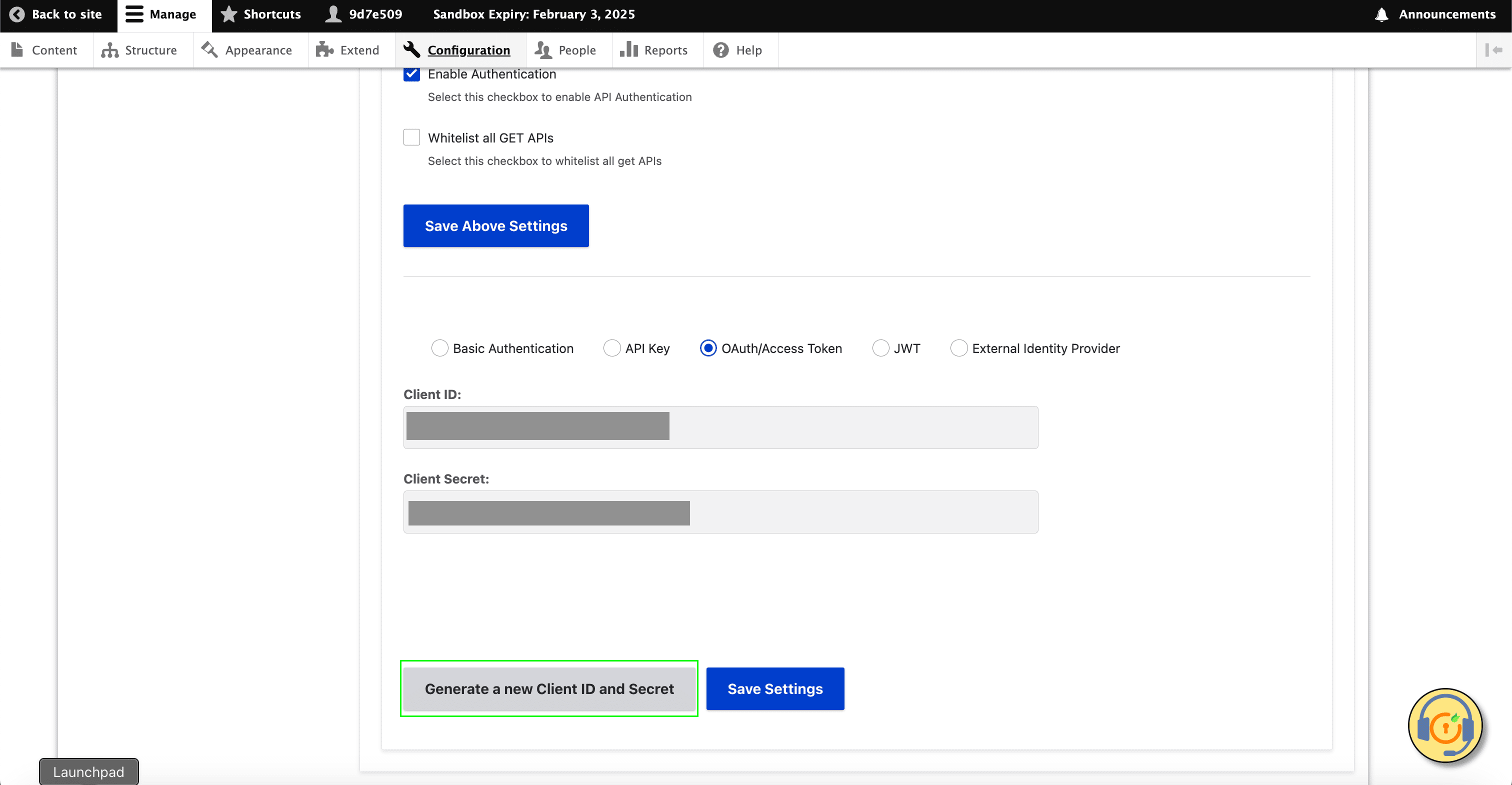 - Go to Configuration ‣ API Authentication ‣ Configure API Authentication.