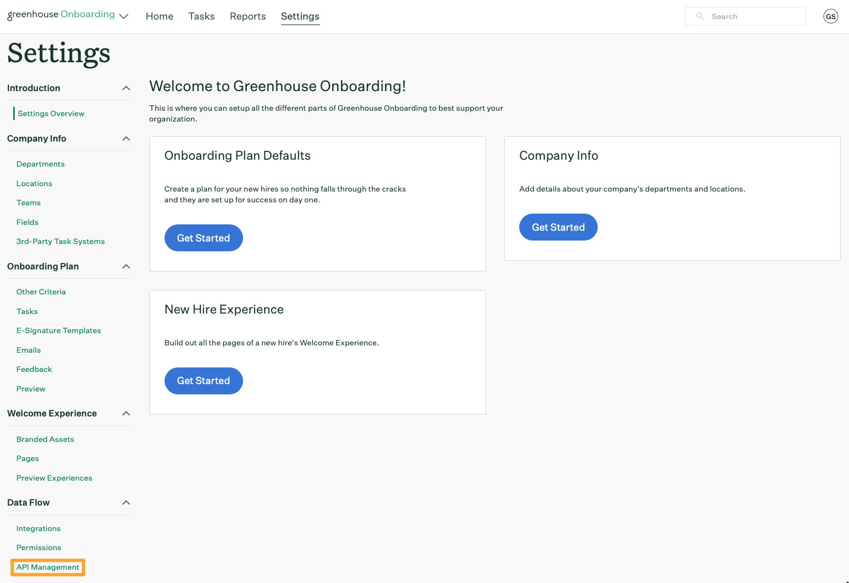 - Log into your Greenhouse account and click Settings on your navigation bar.