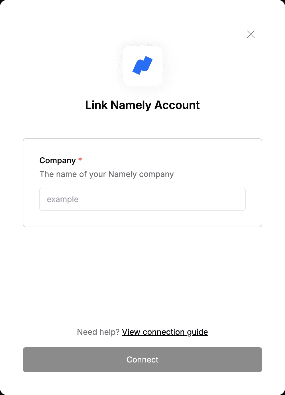 To authenticate with Namely, you need:- Company Name - Your company name, used to uniquely identify and access your organization’s Namely instance.