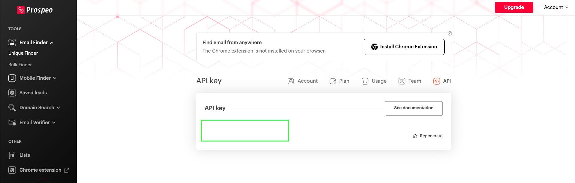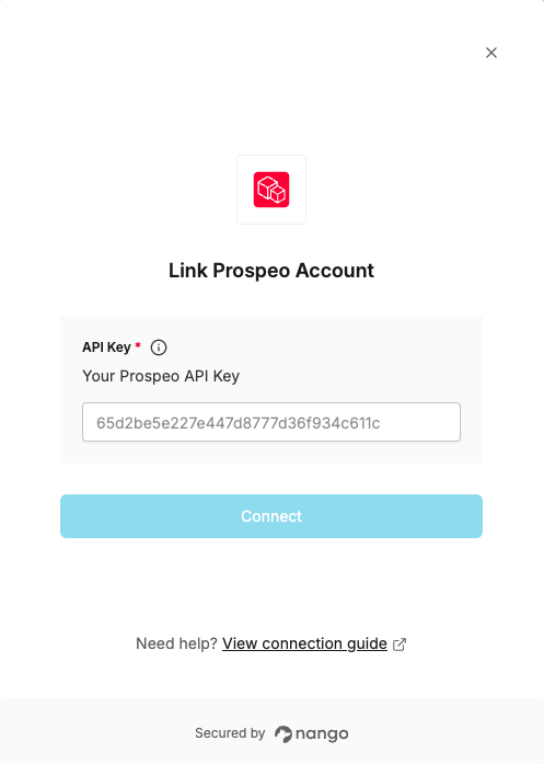 To authenticate with Prospeo, you will need:- API Key - A key that grants Nango permission to interact with Prospeo’s API resources and services.