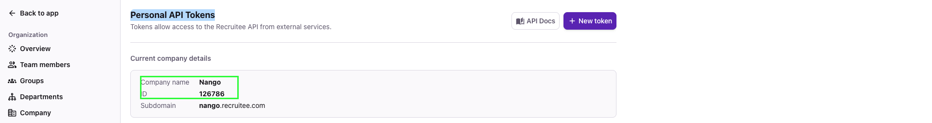 To authenticate with Recruitee, you need:- Personal API Token - A personal API token that grants Nango permission to interact with Recruitee’s ATS API.