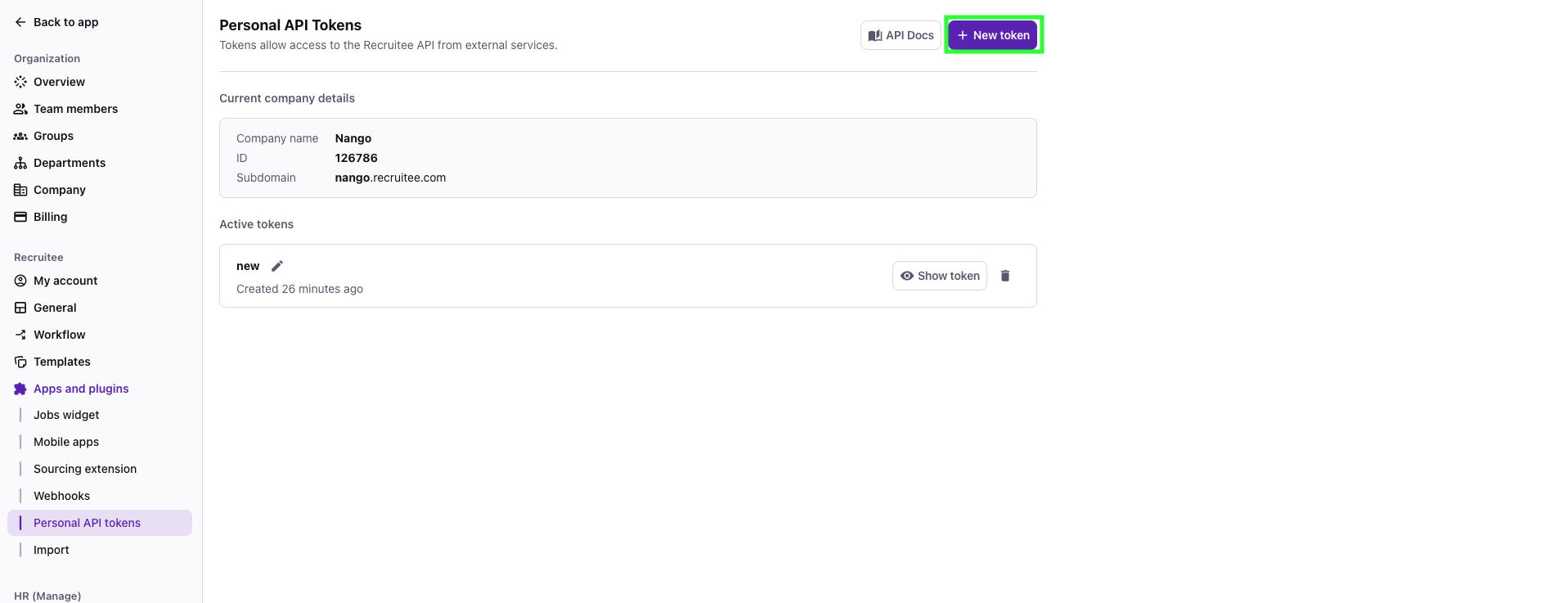 - You must have a Recruitee account with appropriate permissions to generate Personal API Tokens.