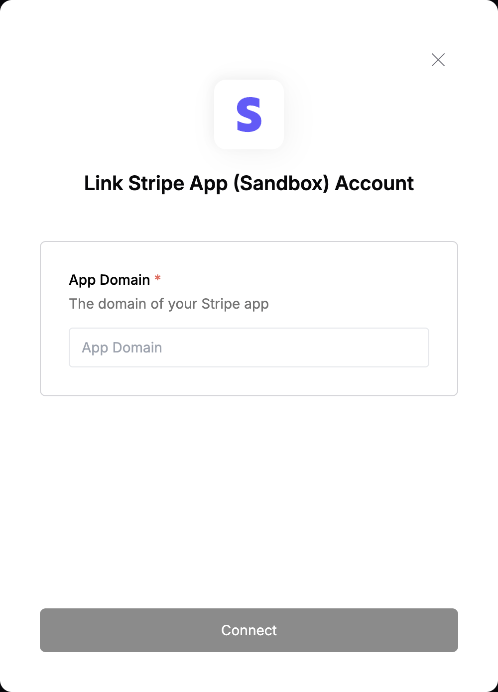 To authenticate with Stripe App Sandbox, you need:- App Domain - A temporary id used to identify your application.